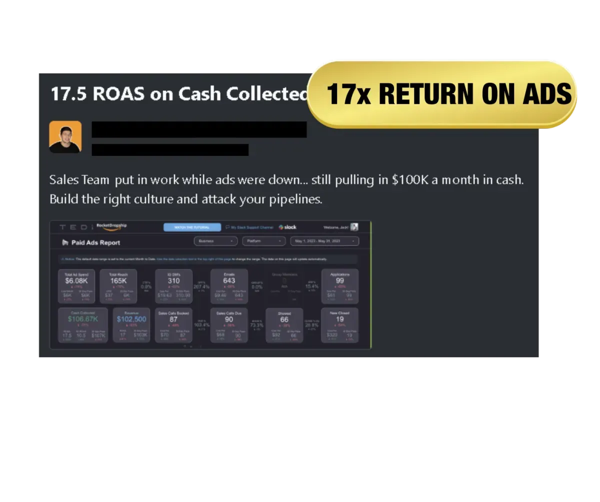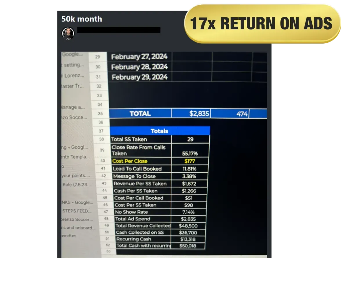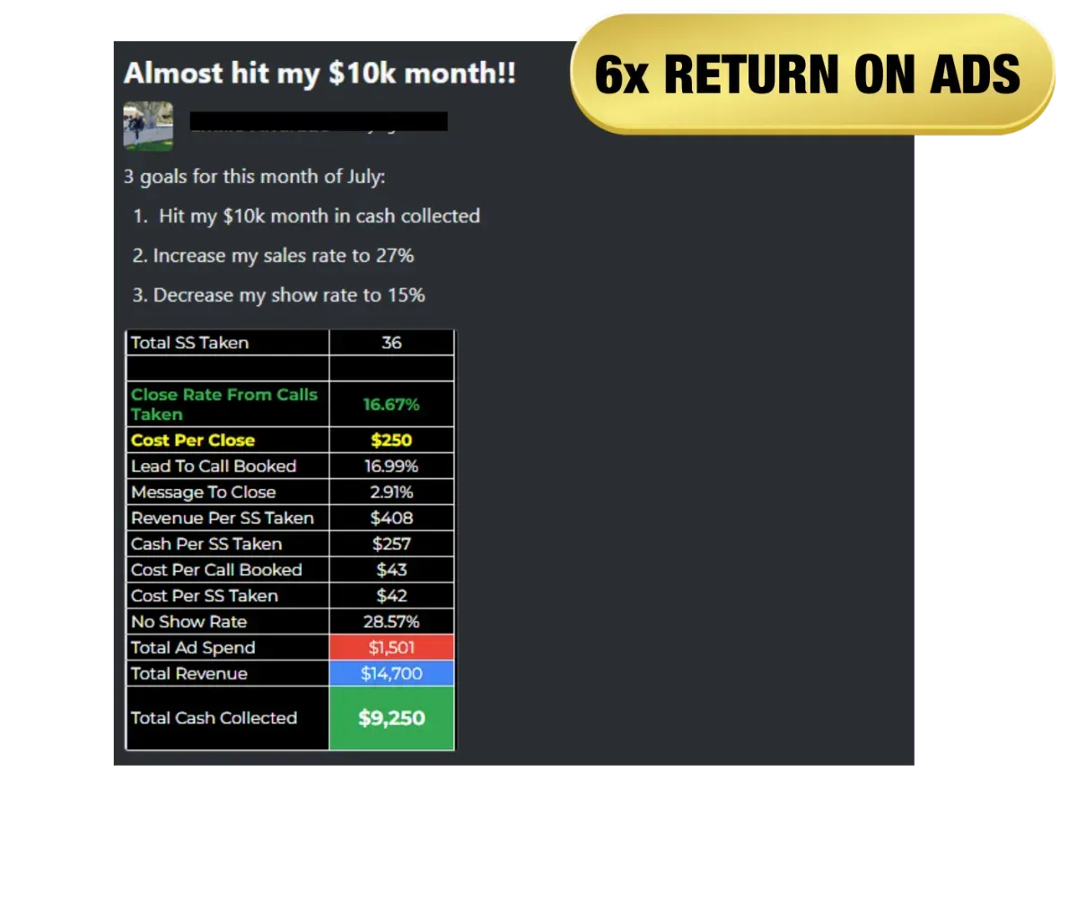The “Self Closing Script” so you know the exact words to say to let your leads close themselves on the first call (we’ve used this strategy to close over 1,000 high ticket deals from ads)